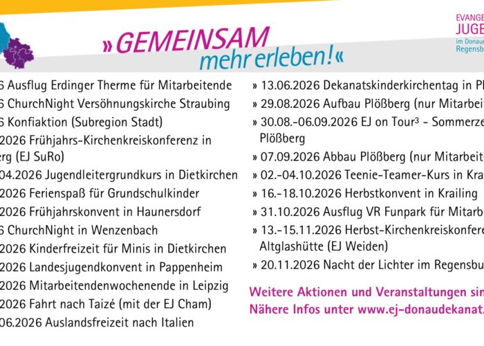 Die Evangelische Studierendengemeinde Regensburg (ESG) bietet zum Herbst 2025 ein Freiwilliges Soziales Jahr an! Wenn du zwischen 18 und 26 Jahren alt bist und neugierig geworden bist, dann schau dir die ausführliche Stellenbeschreibung an! Mehr Infos gibt es auch auf www.regensburg-esg.de. Bitte Interesse bitte direkt die ESG kontaktieren! 🙂