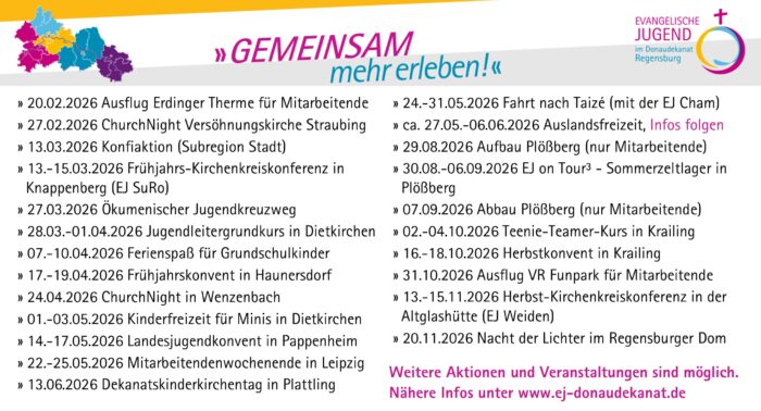 E-Mail: info@ej-donaudekanat.de oder Tel. 0941 5998972.